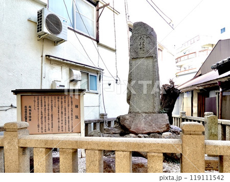 阪急宝塚本線岡町駅東口の商店街から見た原田神社の石碑の風景 大阪府豊中市中桜塚