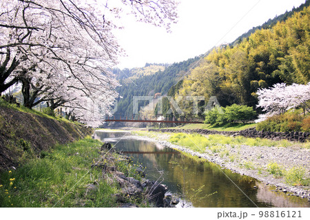 静岡県藤枝市 朝比奈川の桜とちゃっきり橋