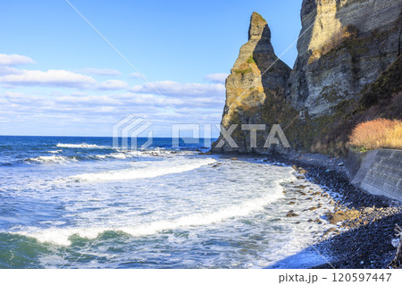 フンベの滝付近の海岸風景 北国イメージ 北海道広尾町フンベ