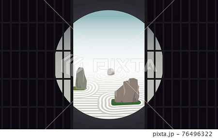 丸窓障子からみる庭園風景