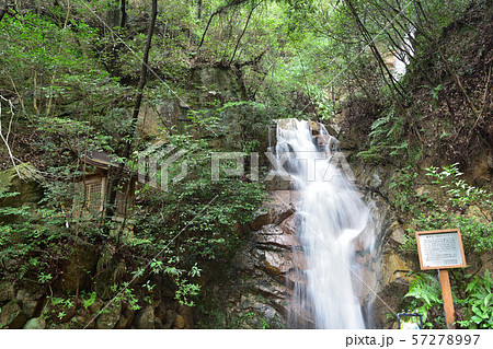 新緑の頃清流岳間渓谷に流れ落ちる滝の風景