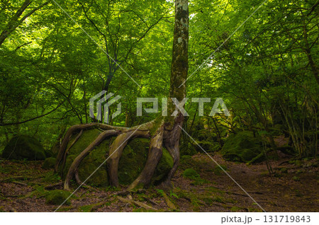 大自然のエネルギーを感じるパワースポット 男池湧水群の岩を掴む巨樹(大分県由布市)
