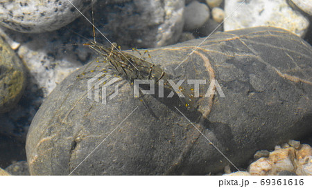 村上市岩ケ崎の磯場に居たイソスジエビ