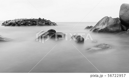岩島 モノクロ 空