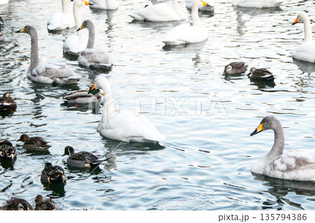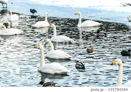 岩手県盛岡市白鳥飛来地の高松池の水鳥達