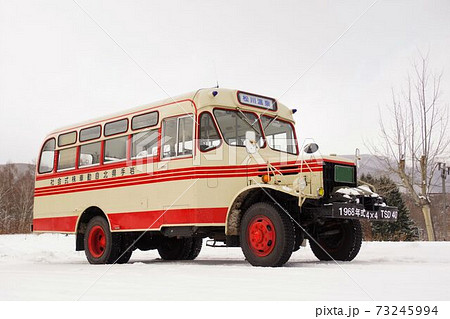 旅のイメージ 冬の岩手を走るレトロなボンネットバス