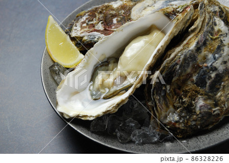 たくさんの新鮮な殻付き生牡蠣
