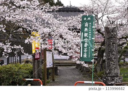 埼玉県秩父市の札所25番岩谷山久昌寺の山門と桜