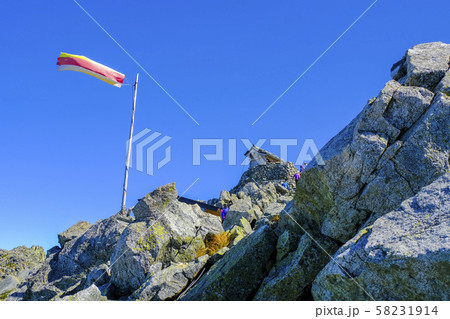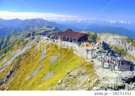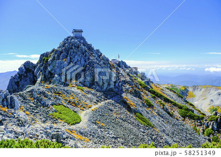 千枚小屋への登山道の岩頭見晴から見る悪沢岳 南アルプス 悪沢岳と荒川岳登山