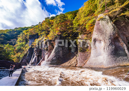 奥津渓の秋 下流から見た琴淵8 岡山県苫田郡鏡野町
