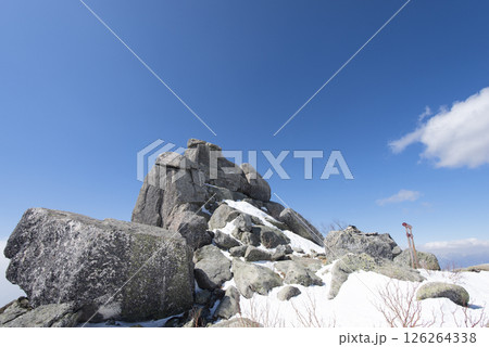日本百名山槍ヶ岳登山 槍ヶ岳の山頂 新聞広告用