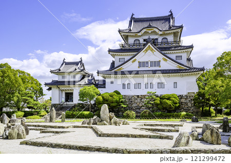 美しい岸和田城天守閣と八陣の庭(大阪府岸和田市)
