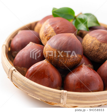 秋の味覚 栗 くり クリ 生栗 茶色の背景