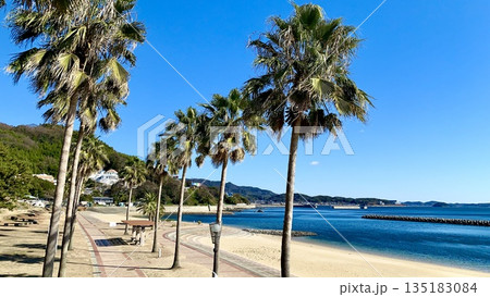 青空に映えるヤシ並木〈宮崎海水浴場(吉良ワイキキビーチ)/愛知県西尾市〉