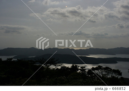 瀬戸内海しまなみ海道の夕焼け、亀老山展望台公園からの景色