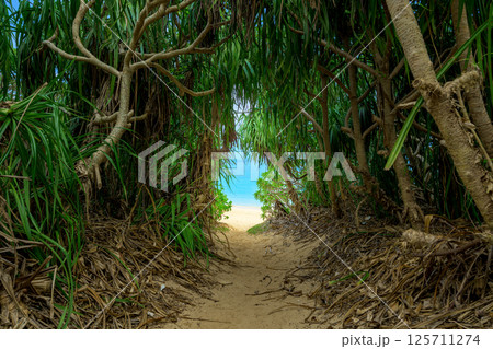 ビーチへ続く素敵な道 石垣島の美しい海 緑のトンネル
