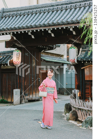 京都観光を楽しむ着物姿の女性