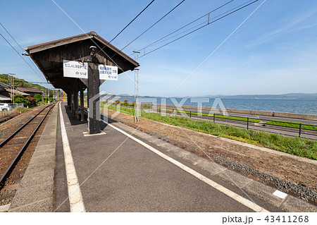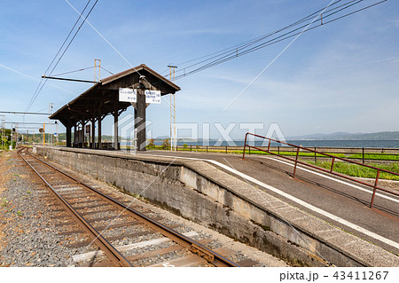 一畑電車のレトロな駅のホームが見える長閑な宍道湖沿線の風景 … 島根県 松江市(晴れ)