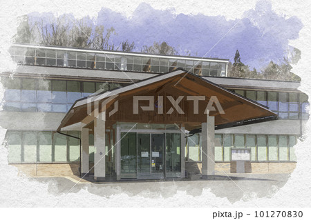 水彩画風 飯南町役場 本庁舎 島根県飯南町