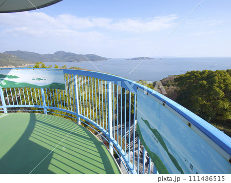 頭島・たぬき山展望台より鹿久居島、鶴島を眺望(瀬戸内の大パノラマを展望できる)