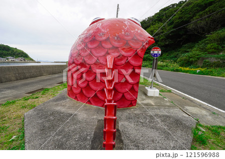 蛎浦島と崎戸島を結ぶ本郷橋近く お魚バス停・今泊マダイのバス停(長崎県西海市)