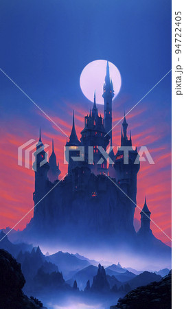 月に照らされた怪しげな古城 ハロウィンナイト「AI生成画像」