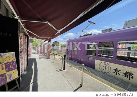 嵐電の電車 嵐山駅 京都 京都市 京都府