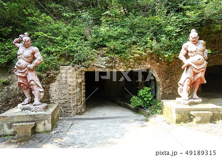 ハニベ巌窟院にある洞窟の前にいる金剛力士像