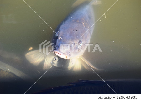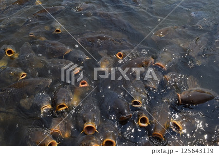 池で餌付け中の鯉