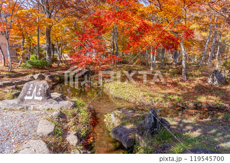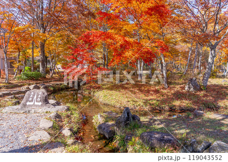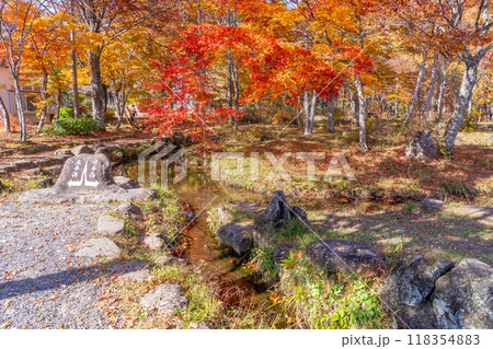 岐阜県郡上市 秋のひるがの高原分水嶺公園の水の分かれる地点