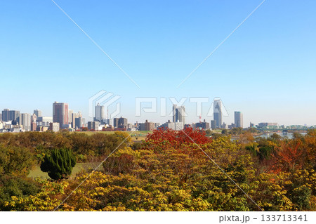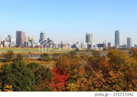 秋の北区浮間から望む埼玉県川口市街