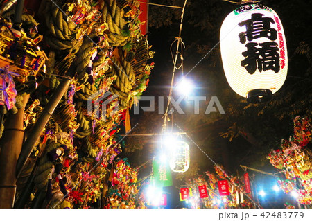 埼玉県川口市の朝日氷川神社の正月の夜の提灯の風景