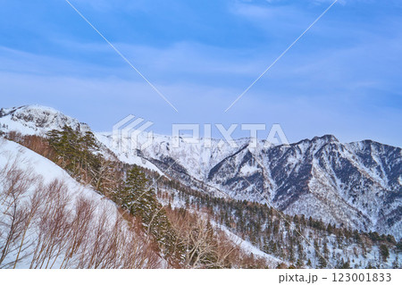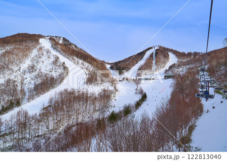 群馬県川場村の川場スキー場のリフト(クリスタルエクスプレス)上から北側の剣ヶ峰山、武尊山方面を見る