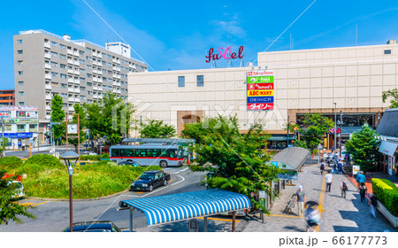 日本の川崎都市景観 武蔵溝ノ口駅(溝の口駅)前のポレポレタウンを望む