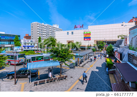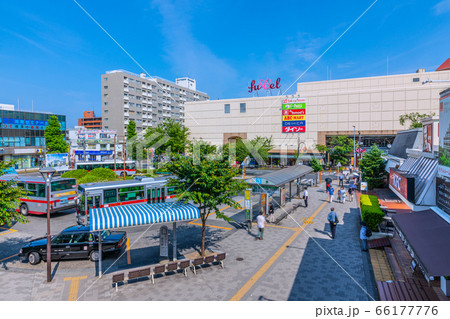 日本の川崎都市景観 溝の口駅(武蔵溝ノ口駅)前の溝の口バスターミナルなどを望む
