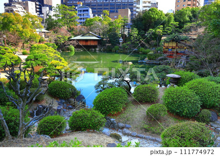 初夏の相楽園の風景 国指定重要文化財の船屋形1 兵庫県神戸市中央区
