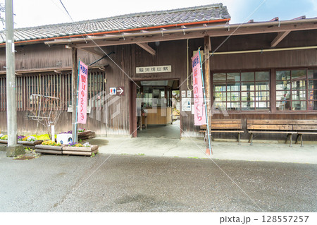 静岡県川根本町 大井川鐵道大井川本線の駅 雨降りの春の駿河徳山駅