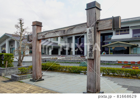 青空に映える庄下川と尼崎城と尼崎市立中央図書館 兵庫県尼崎市