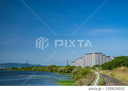 快晴の日の淀川風景 淀川河川公園枚方地区からの景観 大阪府枚方市