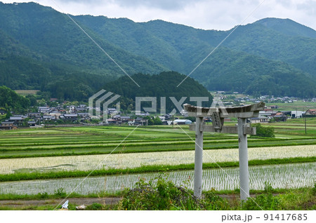 【兵庫】朝来市・和田山、刀我石部神社の鳥居と和田山の田園風景