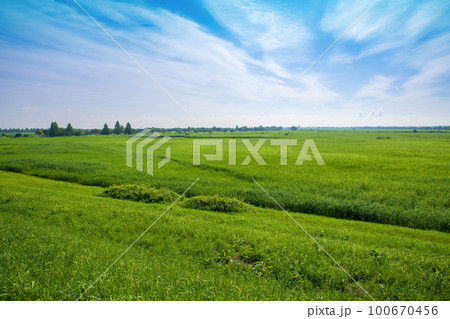 渡良瀬遊水地 コウノトリ人口巣塔付近の眺め 初夏の風景