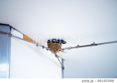 日本の横浜都市景観 ツバメの子育て(かわいいヒナがすくすく…)=あざみ野駅自由通路