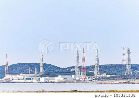 冬の秋田土崎港工場地帯と風力発電の風景 秋田県秋田市