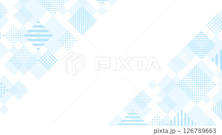 水色のドットとストライプ柄の正方形の斜めフレーム