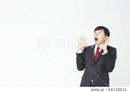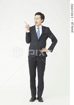 自信を持って立つスーツを着た男性とコピースペース A man with a suit standin