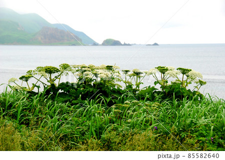 礼文島の花 ゴロタ浜に咲くオオハナウド