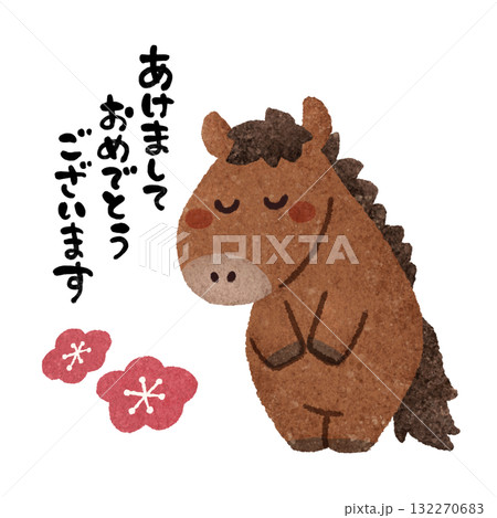 お辞儀をする馬のキャラクター 手描きイラスト素材