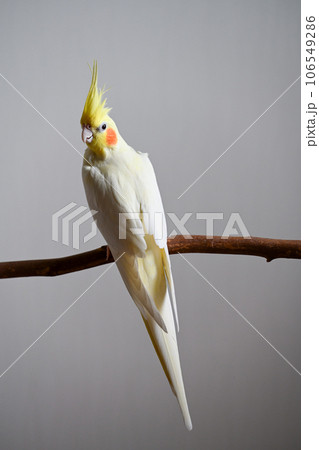 自然木に止まるオカメインコ
