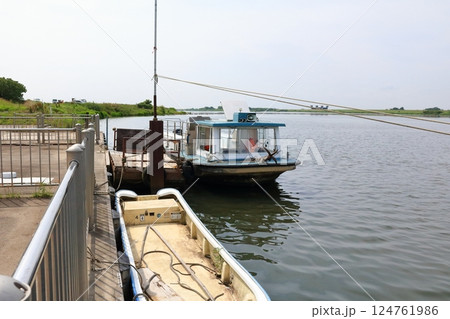 利根川の右岸と左岸を結ぶ渡船の渡し場、赤岩の渡し