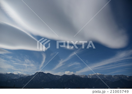 北アルプスと輪郭がぼんやりした巨大な雲:長野県北アルプス山麓池田町2016.2.12-67